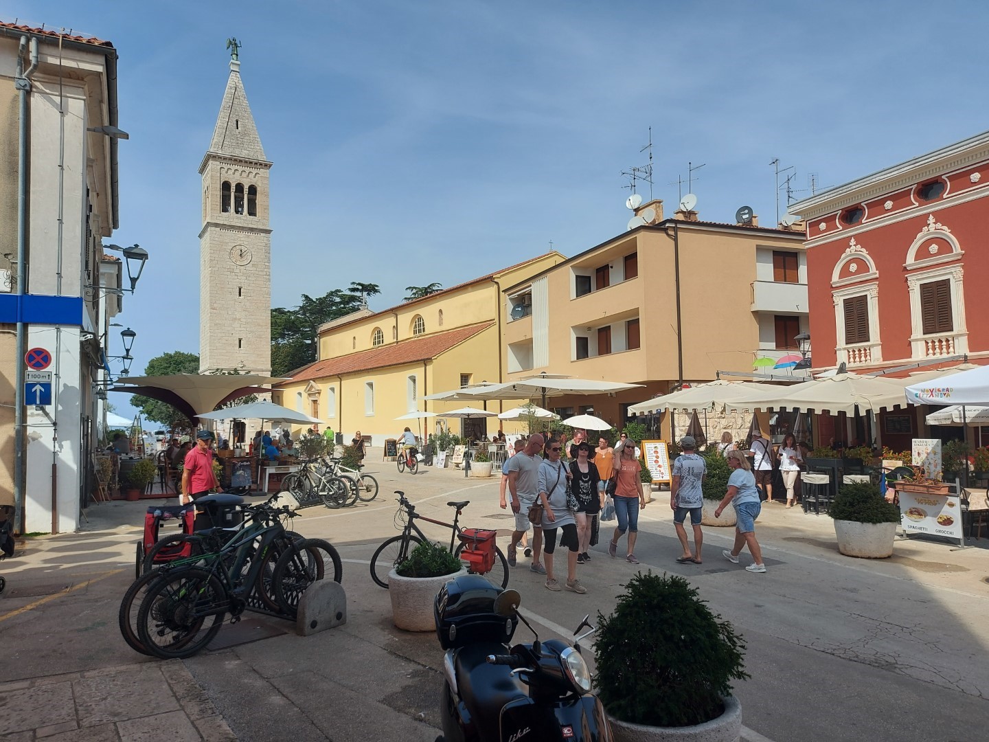 Župna crkva Sv. Pelagija, bistro Piazza grande, Veliki trg, Velika ulica, Mlinska ulica, gradska lođa, Circolo, Prolaz Boška Petrovića, Porporela, Mandrač…navlače atmosferu jeseni i mašu još vrelim uspomenama. Dugo je potrajalo, ali je opet prebrzo skončalo. U vlažnom dahu i preteškom zraku, ususret cikloni koja u bremenitim oblacima skriva kišni dan, u nemirnoj slutnji se iskrada spontani pozdrav:”Adio ljeto!” i oko smiraj potraži na ribarskim brodicama što lagano palucaju u svojoj sigurnoj luci.