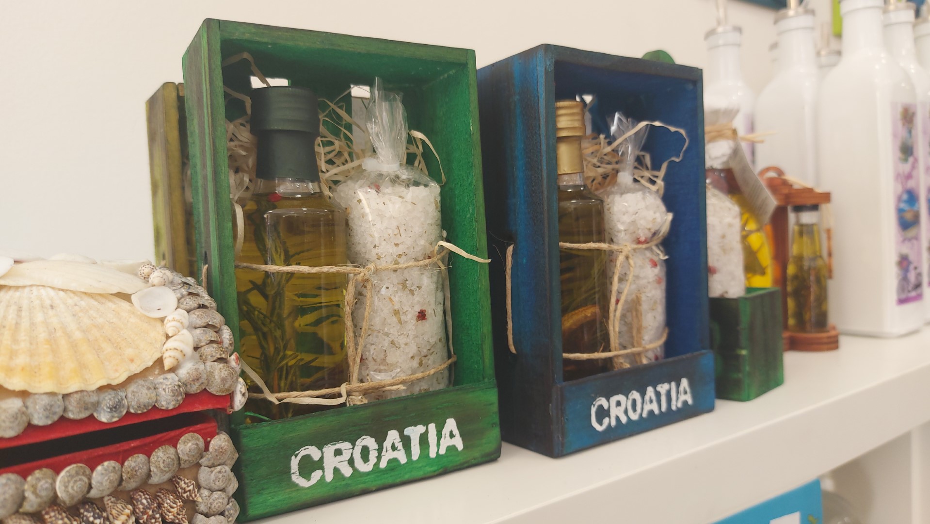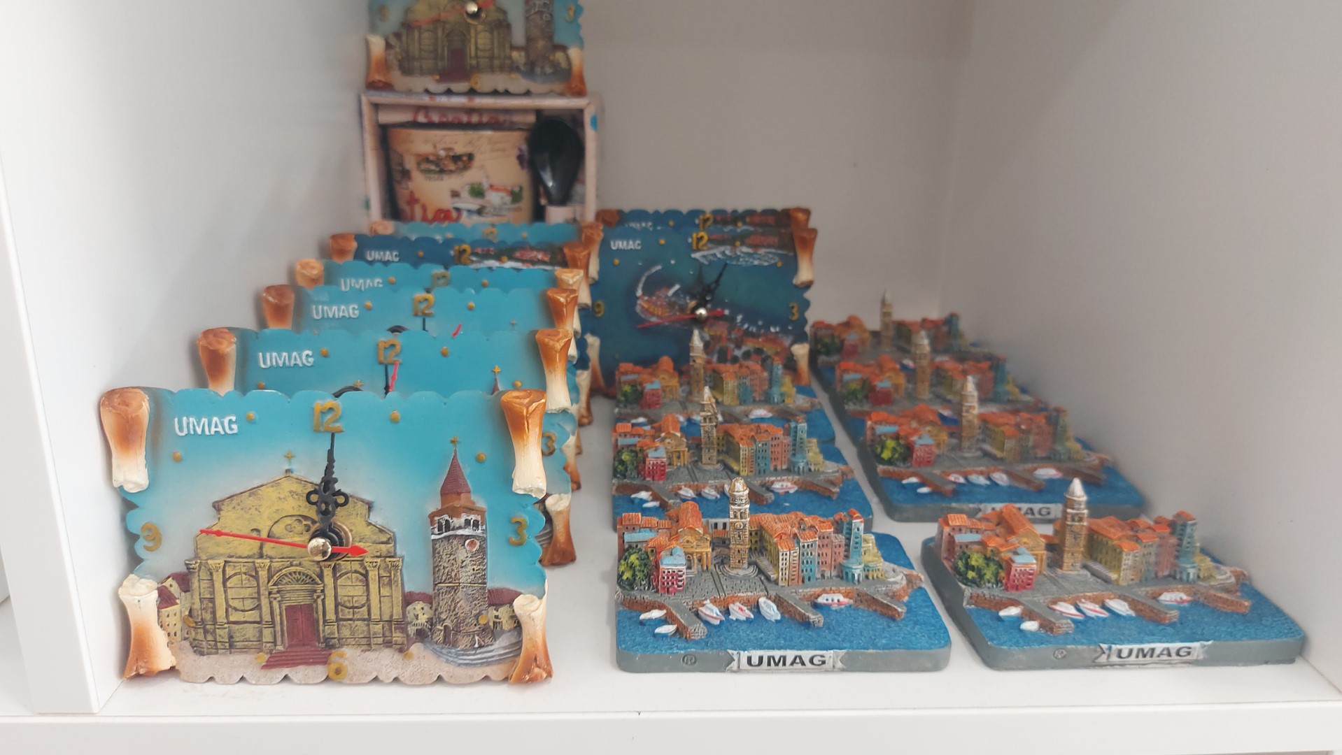 U njoj nema što nema, tako da vas stavlja u problem što odabrati. Školjke koje pričaju morske priče, krakate morske zvjezdače, oslikani magnetići, uporabne keramičke posudice, čaše, lončići, šalice, šalice za kućne ljubimce, razni predmeti za ukras (tzv. accessories), kormilarski satovi, drvena sidra, staklene ukrasne ribe, barkice, novčanici, mini makete Umaga, majušne kornjače, okviri za slike i fotografije…oslikano bojama i motivima koji u minijaturama podsjećaju na autentičan doživljaj destinacije. U ponudi su i tradicijska maslinova ulja, tartufi, destilati, lavanda, vina…okusi i mirisi destinacije. Iznenađenjima nikad kraja!