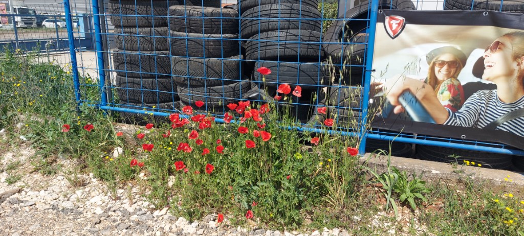 E, pa stigla neka napredna vremena u kojem su nestala žita, nestala polja, nestali seljaci, nestali poljoprivrednici, ali preživjeli crveni makovi kao jedini buntovnici, predivan korov u urbanom društvu i hrpi betona. Jer priroda unatoč čovjekovoj ugrozi još od postanka traži svoj ciklički put do naših emocija. Uzvraća našoj opakoj ruci magijom raskošne ljepote osobito fascinantnom na neočekivanim mjestima tla i naseljenih kvartova. Tako su ovih dana niknuli neki urbani makovi. Usput. Gumeni. I dotiču ljudsku dušu kao da je vrijeme stalo.