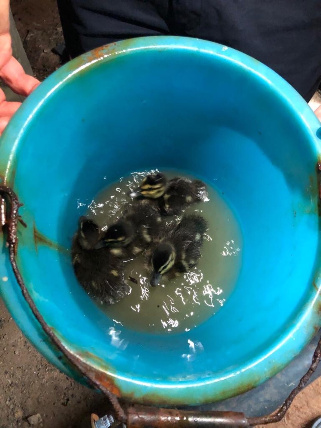 Nazvale su broj 112 sa Celininog švedskog mobitela, i ona im je objasnila da se nalazi u Hrvatskoj i što se dogodilo. Ljubazno su je saslušali i prespojili oko 21, 30 sati na umašku vatrogasnu postaju i vatrogasno je tehničko vozilo s dva vatrogasaca Diegom Brajkom i Andrejom Biloslavom stiglo na mjesto događaja za par minuta. Krenuli su šmrkovima u cijevi pod pritiskom vode izgurati pačiće kroz neku od zlokobnih rupa uz rub bazena. No sav je njihov trud bio uzaludan. Pačići su samo snažnije gakali, odnosno plakali, a mama patka također. I Hana je bila očajna kad je vidjela da im nema pomoći. Trajala je vatrogasna intervencija možda i sat vremena. No nisu odustajali i kako Hana veli, tek je tada taj njihov brojčano veći tim spasitelja postao složan da pačiće spasi. I onda su se vatrogasci dosjetili Darka Prodana, kućnog majstora iz naselja iz turističkog naselja Polinezije (Plava Laguna), potražili njegov broj mobitela i nazvali čovjeka u subotu kasno navečer nešto prije 23 sata da im priskoči upomoć, a baš se nesmetano odmarao u svom domu pripravan za postelju. I nije se dvoumio ili izmotavao, bez krzmanja je odlučio doći i priključiti se ovoj „pačjoj službi spašavanja“. Hana je bila neopisivo sretna kad se pojavio i otvorio vrata kućice iz kojeg stube vode do kompenzacijskog bazena. Cilj im je sada bio s vatrogasnim šmrkovima pogurati pačiće iz kobnih cijevi u vodu kompenzacijskog bazena gdje bi ih kućni majstor sačekao u vodi, obuven u gumene čizme. Hanu nisu pustili blizu jer je bila u rolama i panično je pratila tijek situacije, osobito mamu patku kojoj je u mraku jedva nazirala obrise, ali je dobro čula njezino očajničko zapomaganje. I tako su se vatrogasci i kućni majstor namučili dobra dva sata dok prvi pačić nije pljusnuo u vodu podzemnog bazena. Za njim je uletio još jedan i mislili su da je, čiča miča gotova priča. No uslijedio je proboj još tri malene bebe patke kroz vodeni mlaz kao niz vodopad. Onda je kućni majstor krenuo u lov za njima po bazenu da ih premjesti u kantu i vrati nesretnoj mami patki. Gotovo je pola sata gacao po bazenu za zadnjim pačićem dok ga nije sustigao i ubacio u kantu te predao mami patki.