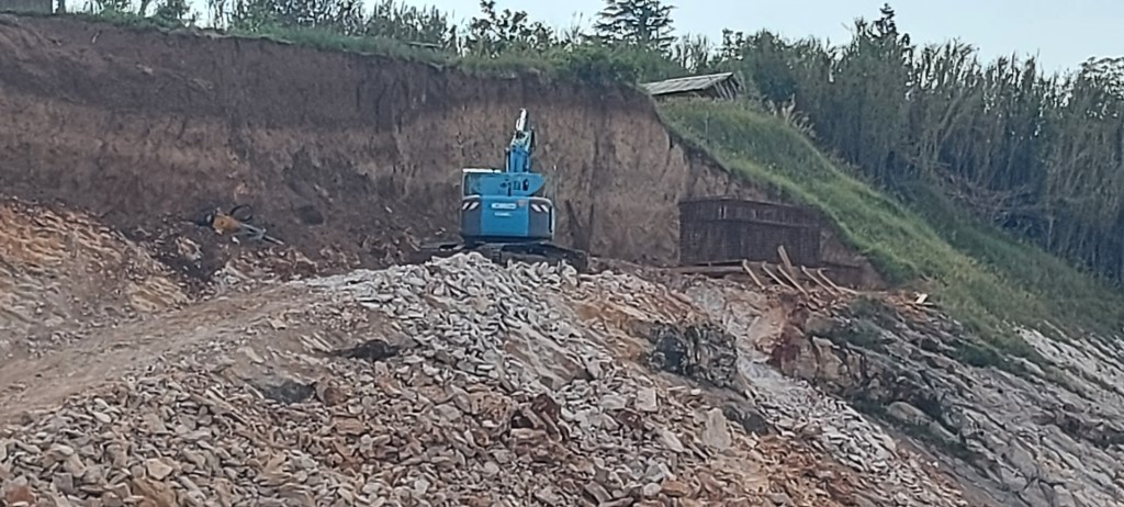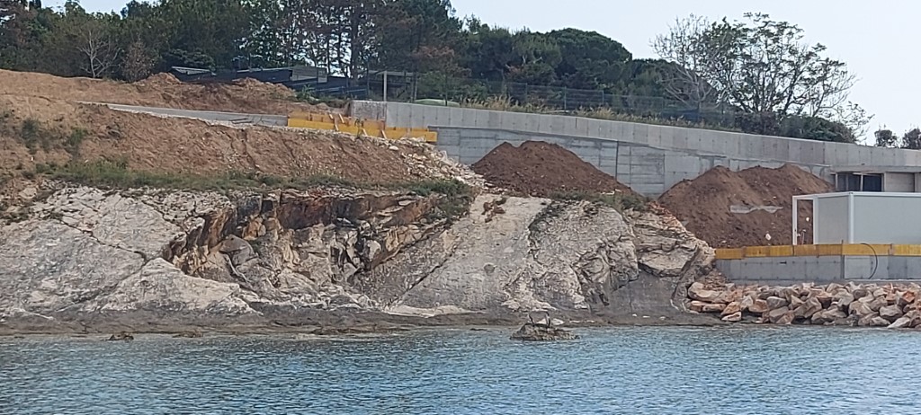 U nastavku pogledajte na fotografijama sve što smo naveli tekstualno. Gdje je u planu predviđena šetnica (crvena isprekidana linija), Kako se “minirala” obala, gulili slojevi zemlje, brutalno mljele stijene i time praktički stvorilo “klizište”…