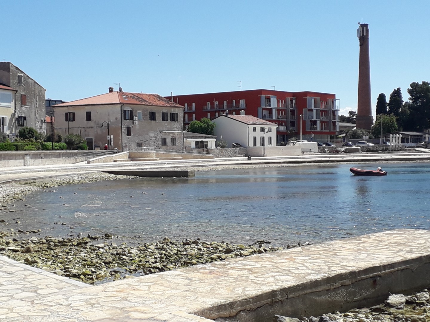 Povratak u grad je šetnicom Sv. Peregrina, južnom obalom grada u zaljevu kojega su nekad stari Umažani nazivali Sabionetti zbog pjeskovitog morskog dna, koje je bi nakon bure davalo zaljevu refleks modre boje pa danas popularno šetnicu zovemo Azurna obala. Na kraju zaljeva se uzdiže tvornički dimnjak tvornice Arrigoni, koju je 1912. osnovao Pietro Manzutto. U njoj se prerađivala riba i povrće, a zapošljavala bi i do 400 radnika. Danas je tu izdvojeni pogon Podravke za preradu industrijske rajčice. Zaokrećemo sa Azurne obale u ulicu Dante Alighieri i zastajemo ispred nekadašnje, jedne od prvih kavana -galerija u Jugoslaviji u osamdesetim godinama prošlog stoljeća, u vlasništvu tada najslavnijeg poduzetnika u kulturi, Marina Cettine. U njoj su gostovali likovni umjetnici svjetskog glasa, mnogi pjesnici, književnici i glazbenici, pa je postala kultno okupljalište kulturne elite Istre i brojnih kulturnjaka izvan njezinih granica. S vremenom se prometnula u prvu privatnu galeriju za suvremene vizualne umjetnosti u tadašnjem istočnoeuropskom prostoru. Nakon prerane smrti Cettine, polako pada u zaborav.