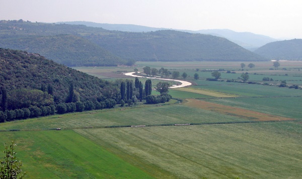 Zaputi li se putnik namjernik starim rimskim putom od doline Mirne prema brežuljcima što se prostiru uz nju, na kraju zavojitog, prašnjavog puta ugledat će se ogroman proplanak, s kojeg puca pogled s jedne strane na morsko plavetnilo, a s druge na dugu, zmijoliku rijeku.