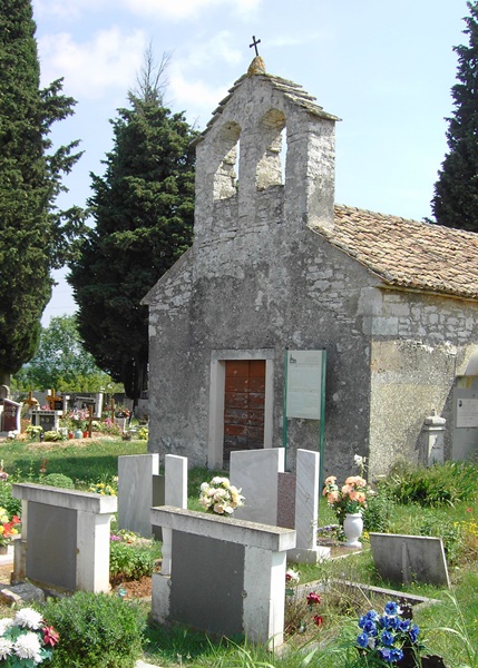 Zaputi li se putnik namjernik starim rimskim putem od doline Mirne prema brežuljcima što se prostiru uz dolinu, na kraju zavojitog prašnjavog puta pukne pogled na ogroman proplanak, gdje se izmjenjuju gajevi i plodni vinogradi koje presijecaju zavojiti puteljci i staze. Sa proplanka puca pogled s jedne strane na morsko plavetnilo a s druge strane na dugu zmijoliku Mirnu. Ovaj vidikovac nije ucrtan u zemljopisne karte a nadvio se poput stijene nad tokom rijeke kao da želi pratiti svaku njenu kap na putu prema moru. Teško je sa ovih prostora razgraničiti kopno od mora. Stapaju se oni u oku nakon dugog gledanja u suzu što privremeno zamućuje vid. Na ovim prostorima caruju vinova loza i maslina. Ovih jesenjih dana boje jeseni stapaju se sa zrakom koji sav odiše glagoljivim čudotvornim biljkama. Na samom vrhu prašnjavog puta na oštrom zavoju smjestila se crkva Svetog Mihovila okružena grobljem. Tu, neposredno iza crkve, smješteni su Srbani. Do 1540. godine ovo je bila župna crkva, a sagrađena je na ruševinama stare crkve. Izgrađena je od kamena. S donje strane vidljiva su vrata izrađena od kamena u XV. st. U crkvi se nalazio kip Sv. Mihovila Arkanđela koji je nestao. U podnožju oltara nalaze se dva grba: obitelji Briani i Canal, međusobno odvojeni glavom Kerubina. Zanimljivo je to što je upravitelj Pule bio Emilo Canal čiji je ovo obiteljski grb i nepoznato je kako se on našao na ovim prostorima. Obitelj Briani su bili feudalci iz obližnjih krajeva. U doba restauracije 1628. godine odneseni su oltar i ostale znamenitosti crkve. Crkva polako gubi značaj tim više što župna crkva preseljava u susjednu Novu Vas.