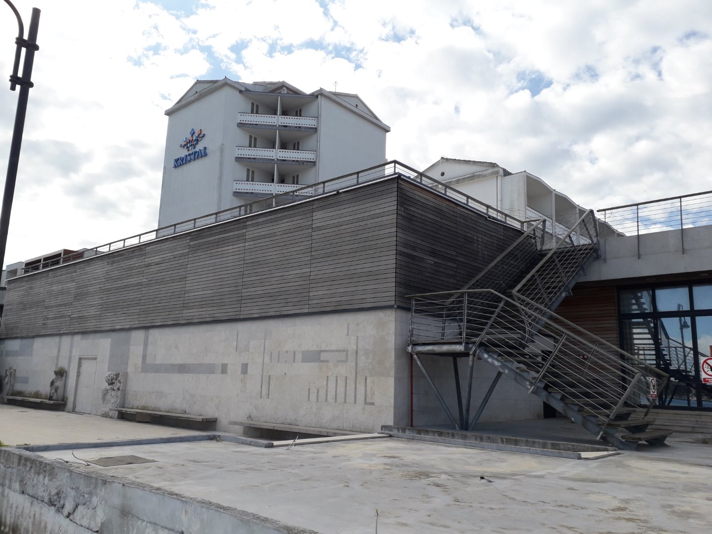 Četvrta stanica - hotel Kristal. Projekt umaškog projektnog biroa i tadašnjeg Općinskog komiteta SKH Bujštine čijom se izgradnjom trebala oživjeti starogradska jezgra i dovesti u nju što veći broj turista. Hotel je zatvoren više od pet godina. Na dosad ukupno provedene četiri (2+2) javne dražbe u ovršnom postupku još nije prodan. Procijenjena vrijednost objekta je 91, 3 milijuna kuna, ali kalkulira se da bi mogao otići za cca 27 milijuna kuna. Ustvari, valjda to čeka potencijalni kupac.