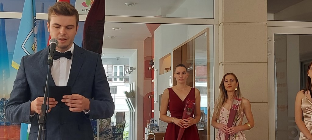 Divno je poput ovih mladih, skromnih osoba u životu tražiti samo lijepo i dobro, a još kada se to okruni i priznanjem poput vrijedne kazališne nagrade onda je to potvrda da nikad nije kasno učiti nešto novo i raditi na sebi. Pri tome se prisjećamo mladih glumica, Umažanki Caterine Vižintin i Luane Kličić, iz prve klase kazališne akademije DS-a koje su na lanjskoj ediciji 24. MFKT Zlatni lav glumile u predstavi „ Svinje“, proglašenoj najboljom u kategoriji publike i žirija. Inspicijent i voditelj predstave bio je Sven Begić.